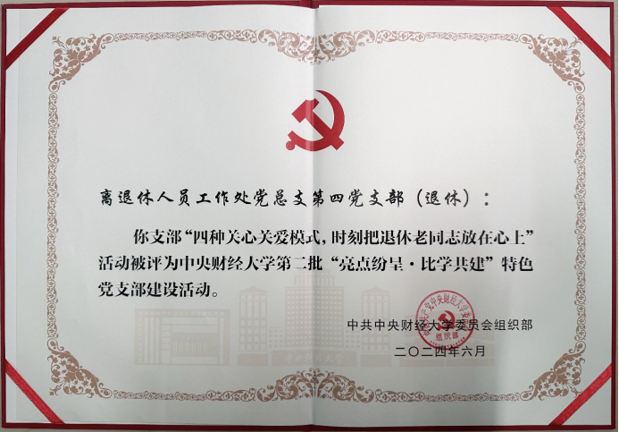 离退休人员工作处党总支第四党支部(退休)活动被评为中央财经大学第二批“亮点纷呈·比学共建”特色党支部建设活动