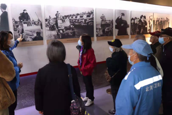 参观中,益寿堂红色基地讲解员结合展览内容,从古都春晓——毛主席北上进京赶考之路,到毛柳唱和、胜利曙光、和平接管等内容,进行了生动丰富的讲解,带领老教授们回顾了我党的英明布局与民主思想,以及当时鲜为人知的中国共产党领袖人物和颐和园的种种渊源。