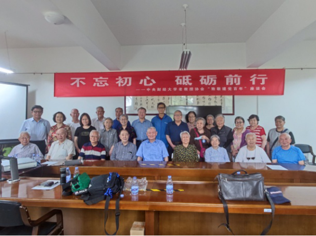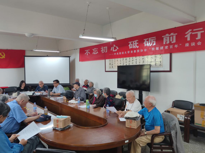 2021年6月8日上午,中央财经大学老教授协会在学院南路校区召开“不忘初心,砥砺前行,致敬建党百年”座谈会。原校长、校关工委名誉主任王柯敬,原校党委书记李保仁,原校老教协会长龙志美、会长韦彦凌、副会长雷沙力等三十余位老教授共同座谈交流,座谈会由老教协副会长兼秘书长梅阳主持。