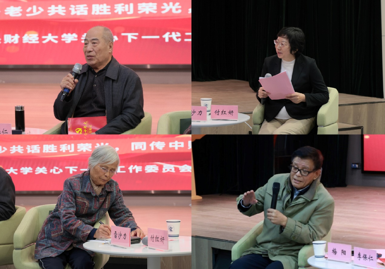 这场由校关工委、校团委联合举办的“薪火映山河,青春承校魂——老少共话胜利曙光,同传中财赤子心”专题座谈会,跳出了传统框架,选择从“行动者”的视角切入——那些亲身参与抗战胜利80周年纪念大会的学生代表成为讲述的主角。原校党委书记李保仁、校关工委秘书长梅阳、统计数学学院副教授付红妍、校关工委成员雷沙力副教授共同出席,校关工委副秘书长、团委副书记陆雪亮主持。