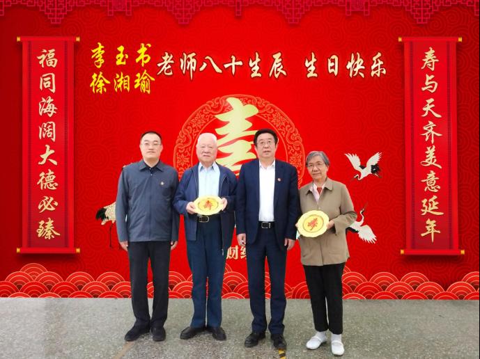 风和日丽贺寿辰,椿萱并茂满堂馨。9月23日下午,校长、党委副书记马海涛和党委常委、副校长李涛在离退休人员工作处领导陪同下,为李玉书、徐湘瑜两位退休教授庆祝八十寿辰。校领导为他们送上寿牌及寿礼,并致以亲切的问候和美好的祝愿。