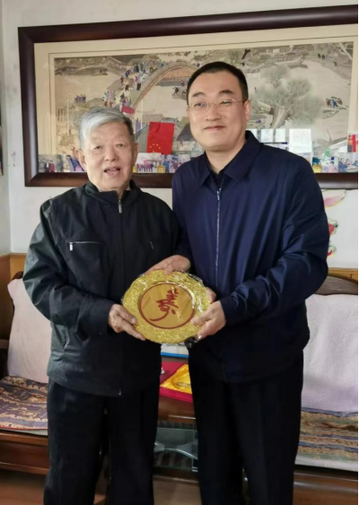 李涛一行首先前往侯荣华教授家中,为老教授送上寿牌寿礼并致以亲切的问候和美好的祝愿。李涛悉心询问老教授生活和身体状况,一起回顾畅谈了学校往事。侯荣华教授兴致勃勃地与大家分享了《十字歌—— 侯荣华人生经历大事简记》,李涛对老教授的丰富经历表示钦佩,并衷心祝愿老教授松柏长青、福寿延年!