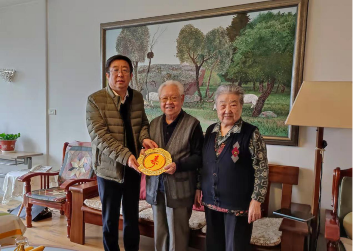 马海涛代表学校为魏教授送上生日寿牌和寿礼,并致以美好祝愿和问候。在随后的交流中,马海涛询问了魏教授近期的身体、生活各方面情况,共同回忆了在学校的过往经历,向魏教授介绍了目前最新动态,真诚感谢他为学校的发展建设做出的巨大贡献,并祝福魏教授及其家人身体健康、生活幸福。