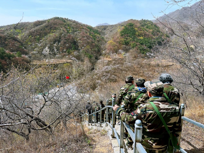 平北红色第一村作为学习革命精神的文化教育基地,早在抗日战争时期,农村党支部就在沙塘沟村诞生,它是北平较早开辟的抗日革命根据地之一。一行人由教育基地老师带队统一着装后,怀着激动的心情踏上“红色征程”,重走抗战路,体验抗战时期的革命军人的光荣和艰辛。首先,大家沿着当年革命先烈走过的路,来到白乙化烈士雕塑前,参观学习白乙化烈士的生平事迹,并向烈士行三鞠躬礼,深切缅怀革命先烈的丰功伟绩和崇高精神。接下来在陡峭山路上行走时,老党员们个个精神抖擞,与年轻党员一字列队前行来到英雄广场,认真聆听基地老师讲述发生在京郊老百姓中的一粥一饭的真情和恩泽故事,用心实践长征精神,感受红色江山和人民幸福生活的来之不易,感受那段峥嵘岁月,热泪盈眶。