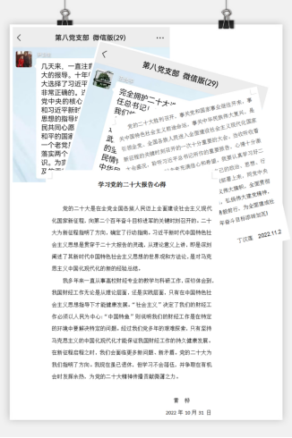 近日,离退休处党总支第八党支部(退休)通过支部微信群开展线上集中学习党的二十大相关文件活动,掀起了学习贯彻党的二十大精神新高潮。