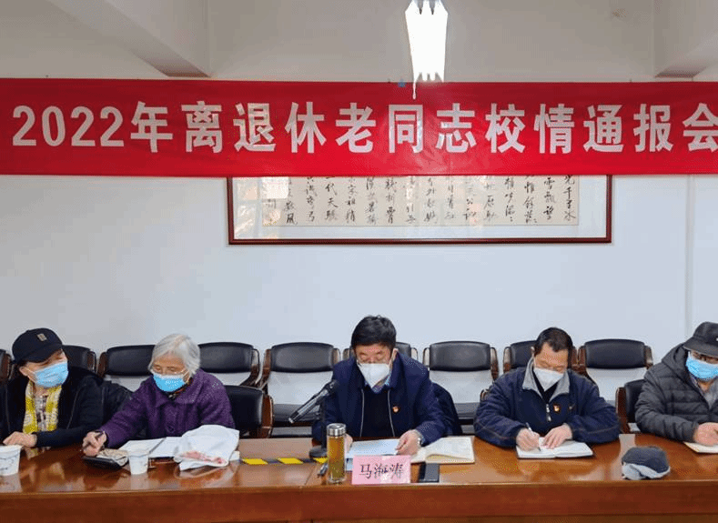 近日,我校在老干部活动中心召开2022年离退休老同志校情通报会,校党委副书记、副校长马海涛向离退休老同志做校情通报。会议由离退休处处长王汝金主持,离休老同志代表、关工委老同志代表、民主党派无党派老同志代表、退休党支部党员代表等参加校情通报会。