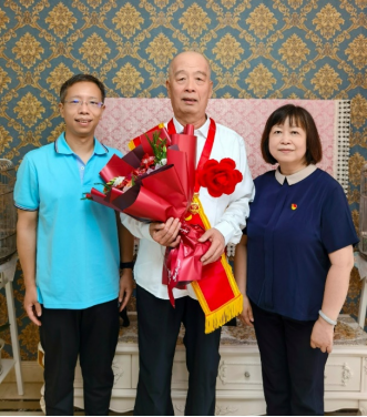因为身体原因,退休党员李老师没能出席“光荣在党50年”纪念章颁发现场。7月1日,党总支书记孙小莉一行专程前往李老师家中,探望并送上“光荣在党50年”纪念章、鲜花、绶带和大红花,转达党组织对李老师的关怀和问候。