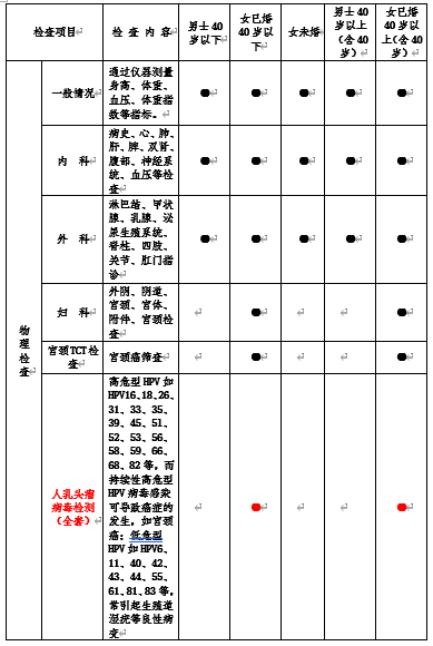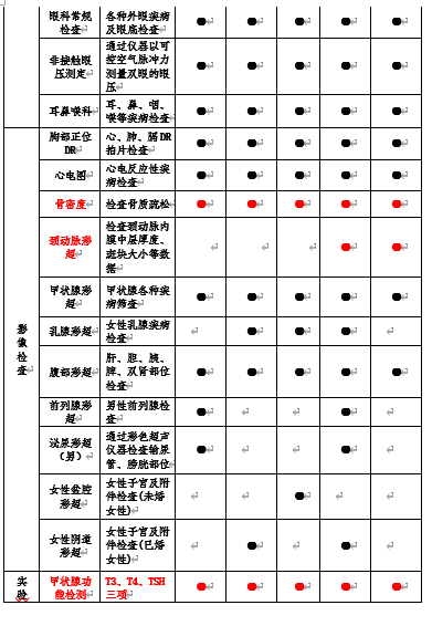 特别说明:下表中“红色标记”的部分是2022年新增加的体检项目。